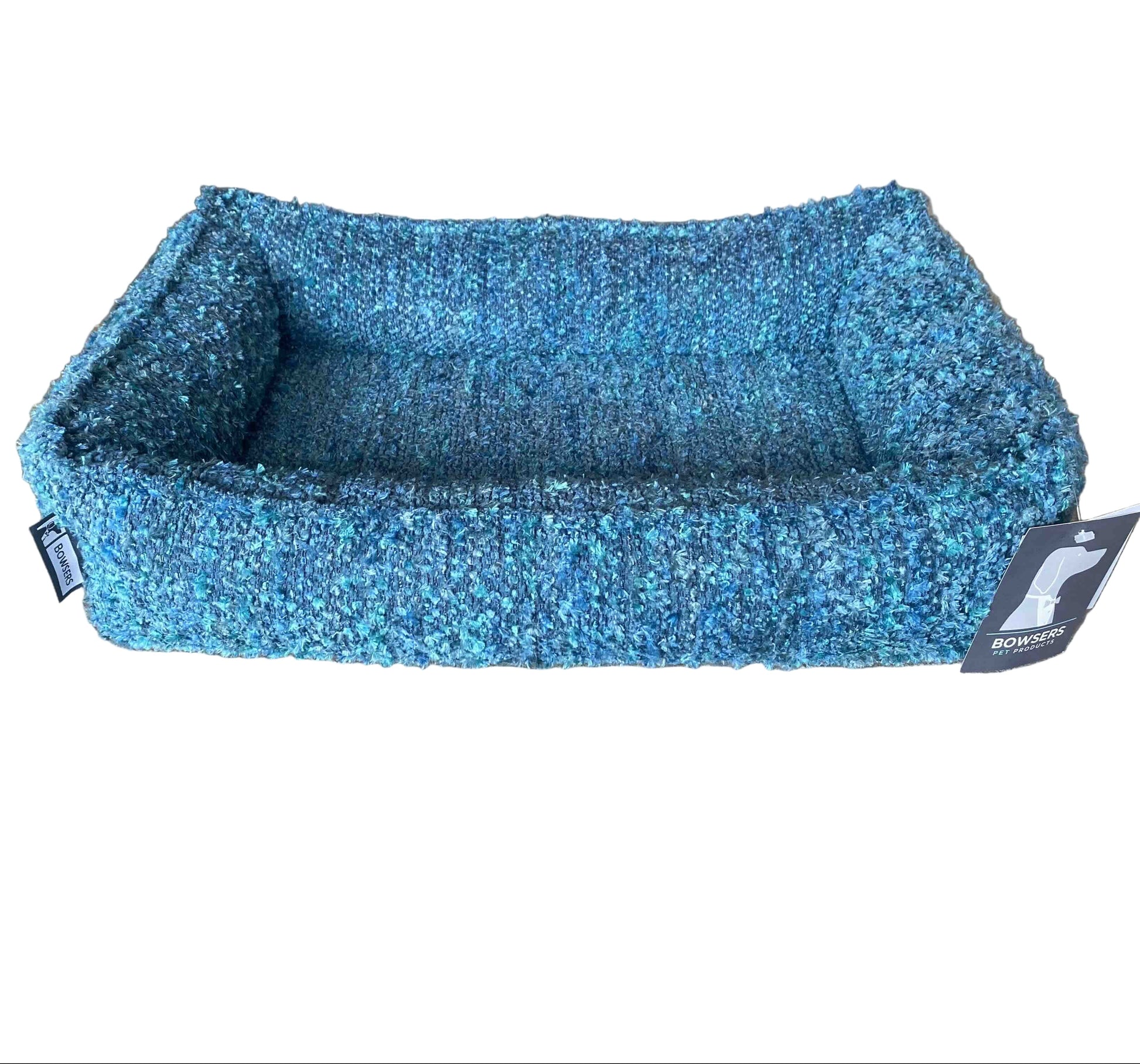Contemporary, streamlined shape and clean lines define this latest trend setting design. Dual layer, fibre topped foam inner cushion provides extra support and plush comfort. Unique one piece design - bottom cushion is secured (zippered) into the bottom of the bed, making this a great solution for dogs that tend to dig and chew removable cushions.