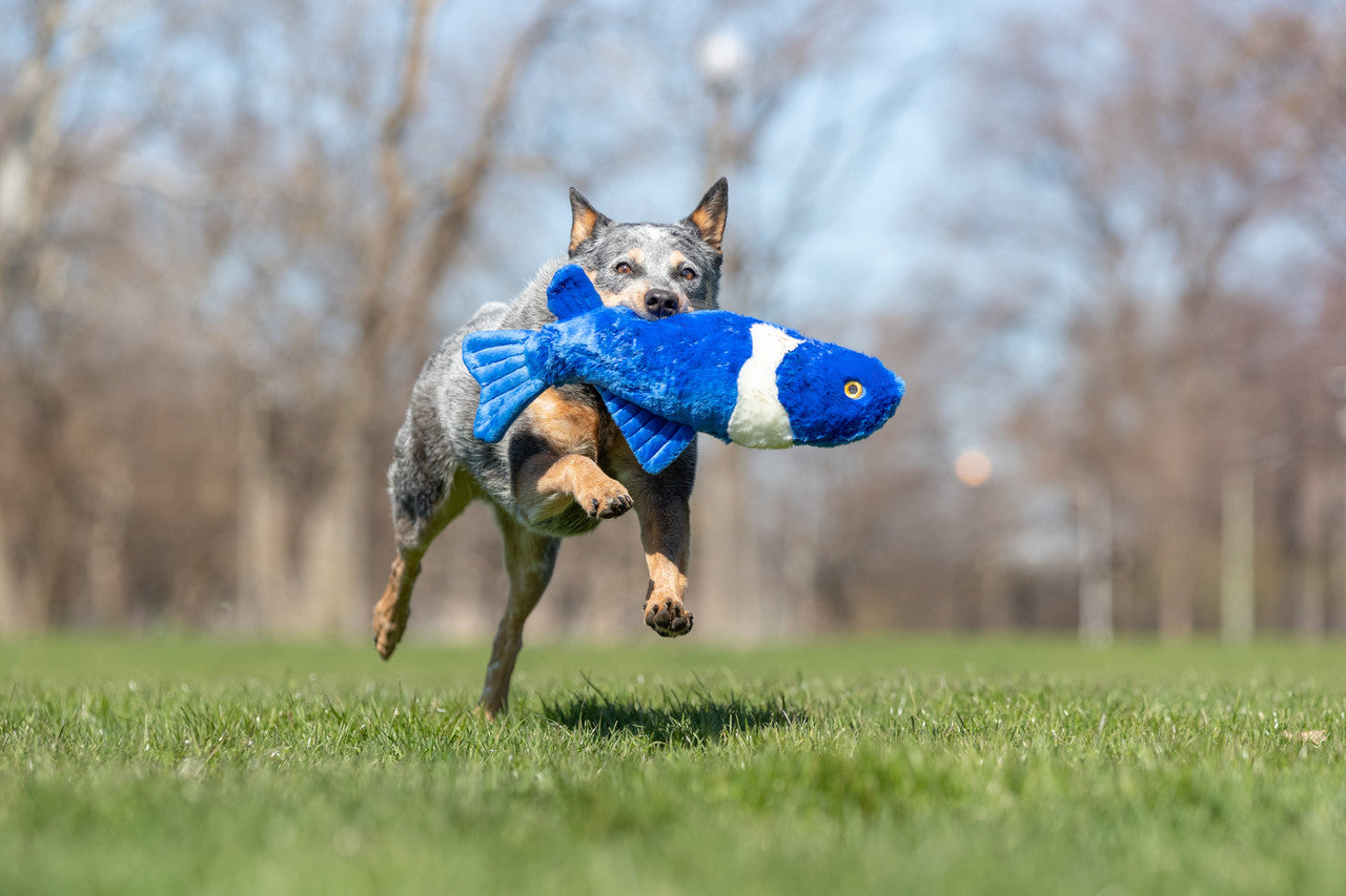 Gil is one of the most popular fish in the pond, mainly because he loves all types of play. His bold color, separately sewn on fins and two squeakers make him extra entertaining. Plus, he’s perfectly shaped to be a post playtime pillow.