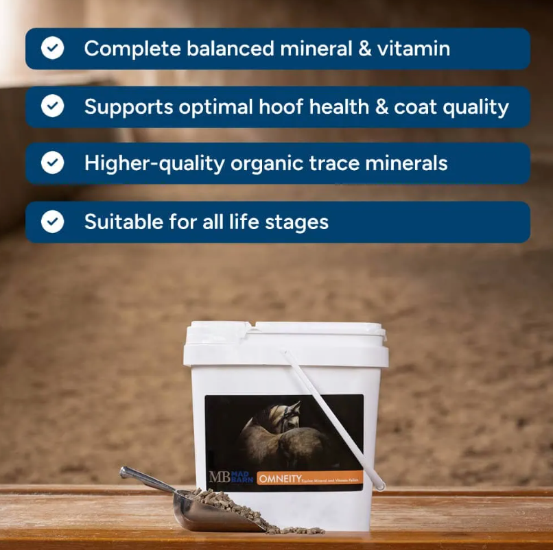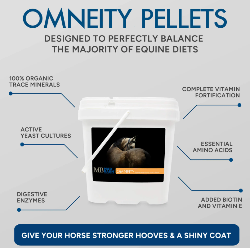 Mad Barn’s Omneity® P is a vitamin and mineral supplement pellet designed to provide every horse with optimum, balanced nutrition – naturally.