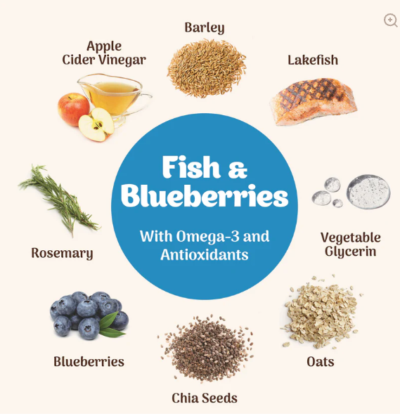 Ingredients: Barley, Lakefish, Vegetable Glycerin, Oats, Chia Seeds, Blueberries, Rosemary, Apple Cider Vinegar.