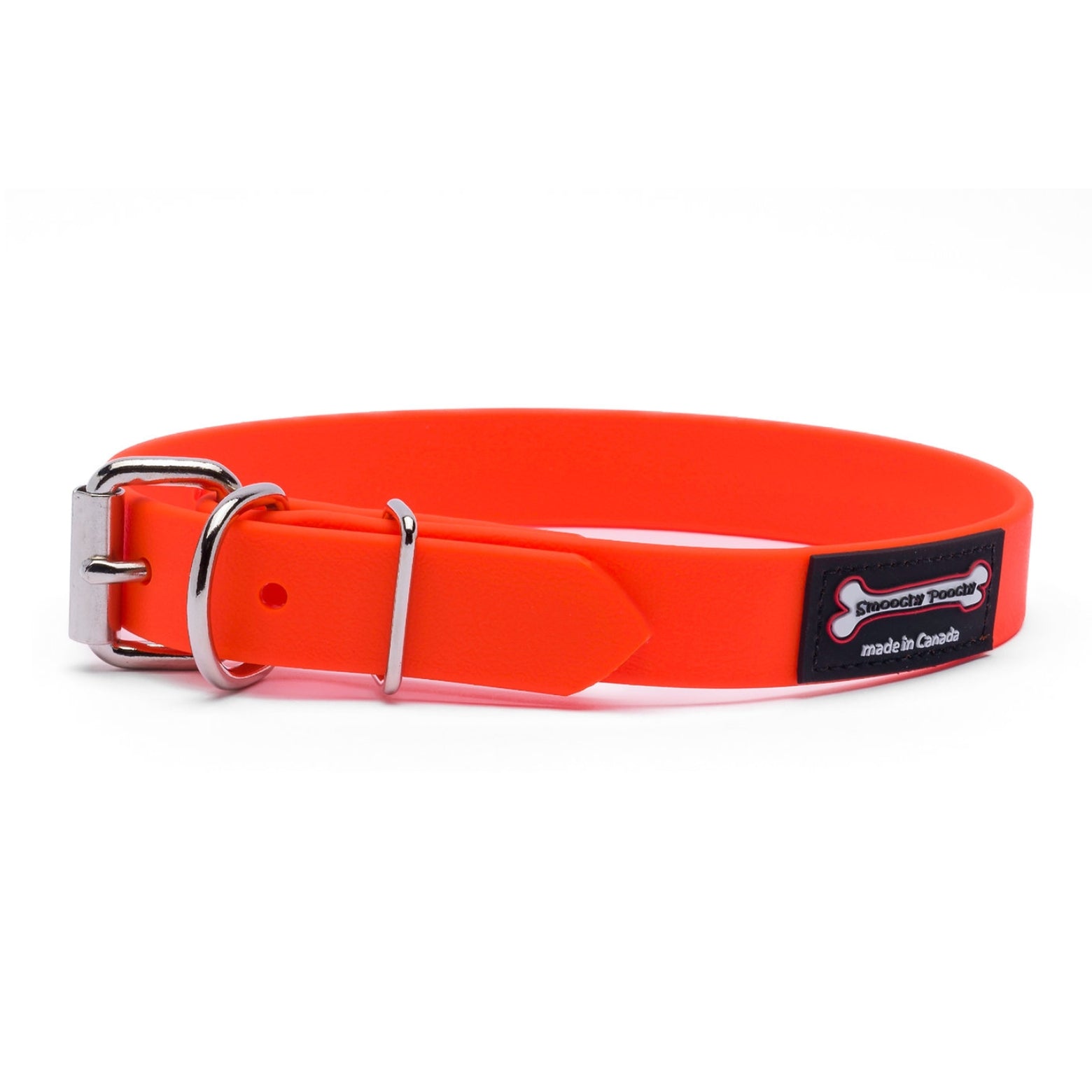 The material remains flexible even in cold weather, making it a functional option all year round. These collars will not stretch out, bleed colour, or absorb skin oils, so your collar will stay looking as good as new for years!