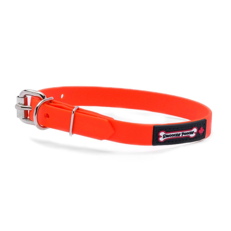 This luxuriously soft and supple waterproof collar bySmoochy Poochy® is perfect for dogs that like to get wet and dirty! Originally engineered for horse tack, the vegan-friendly polyvinyl leather alternative is strong and durable.